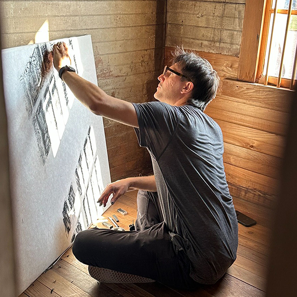 Tomerlin draws with hammers that are meant to pound and etches with clamps that are meant to hold. Their work explores themes of craftsmanship, identity, and the relationship between tools and the body.