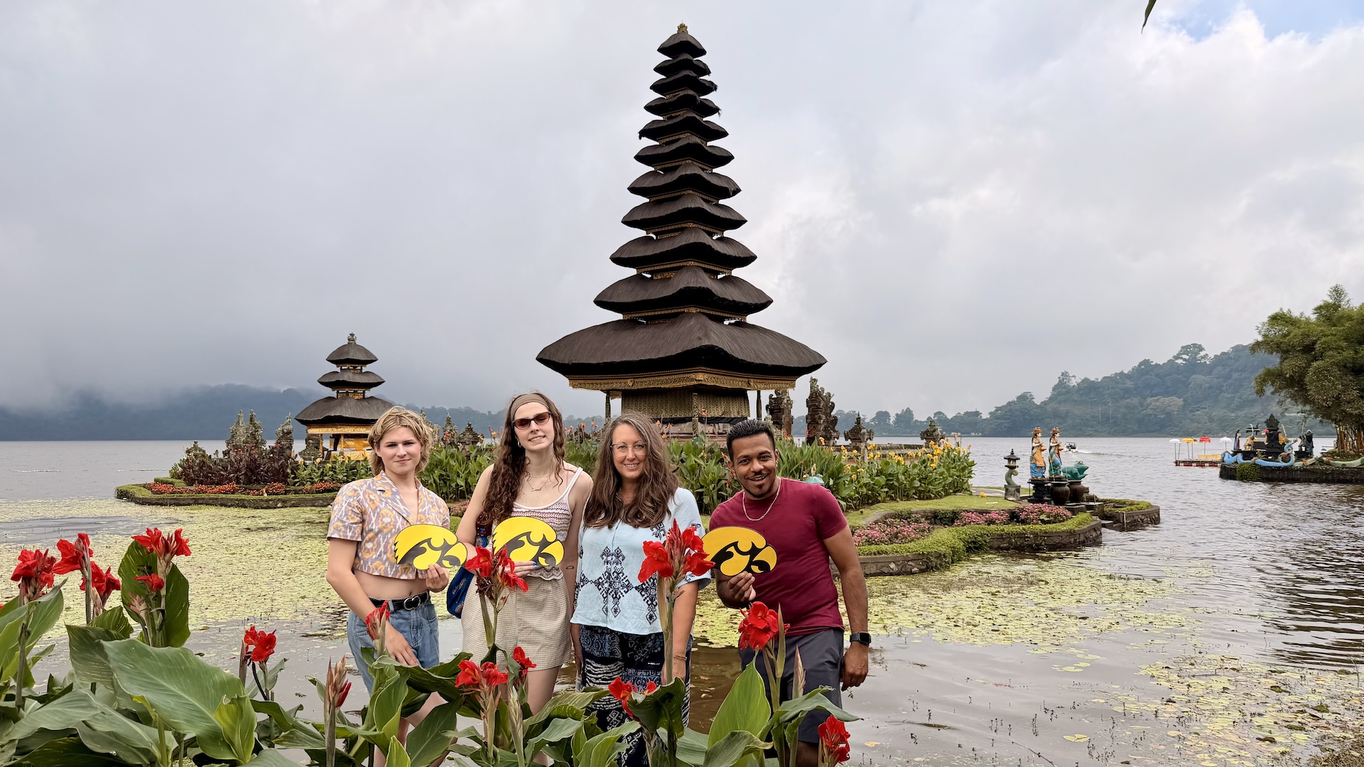 - Assistant Professor of Costume Design Cathy Parrott recently returned from Bali, Indonesia, where she and three University of Iowa Theatre students, Randy Jackson-Alvarenga (MFA Playwriting), Johanna Specht (MFA Costume Design), and Ro Kivett (Undergraduate Acting, Playwriting, Directing, Design), participated in the Bali–Global Axis of Arts and Design (B-GAAD) international conference. At the conference, Parrott presented her paper and PowerPoint “Beyond Tradition: A Cross-Cultural Journey on Stage,” while also costume designing a 10-minute theatrical piece created by UI students. Following the conference, Parrott led a weeklong research tour across Bali, immersing students in the island’s vibrant artistic and cultural heritage. Insights from this experience will directly inform Parrott’s upcoming Mask and Puppet course, debuting this spring, which explores international performance traditions with a focus on Asian theatrical art forms.